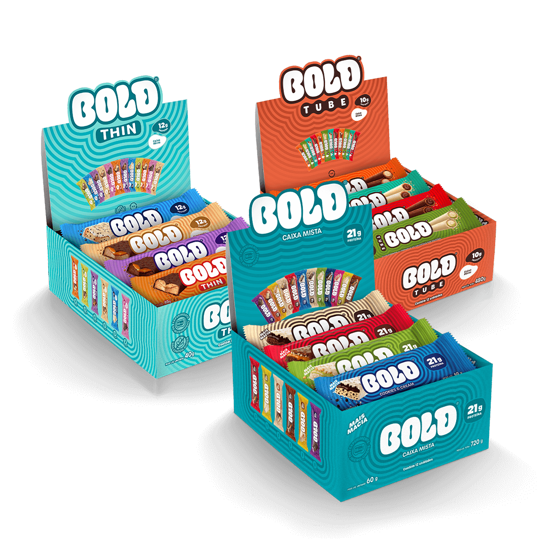 NESSE COMBO VOCÊ TEM: BOLD Caixa Mista (12 un.) + BOLD Thin Mista (12 un.) + BOLD Tube Mista (12 un.).