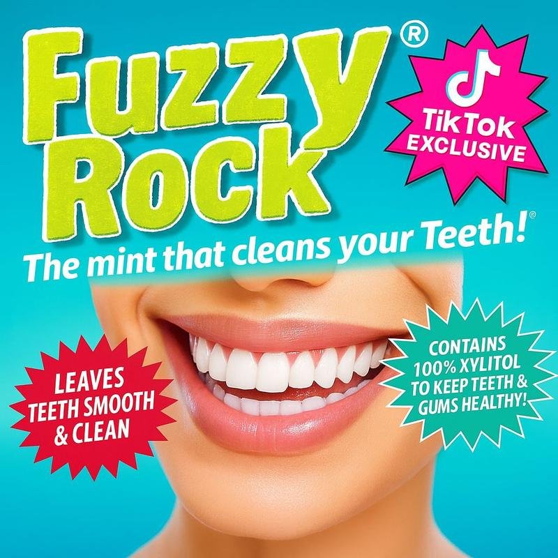 Fuzzy Rock Best Seller Bundle – 4x Packs of Xylitol Mint Crystals (1x Coolmint, 1x Lemon, 1x Peach, 1x Bubblegum) – Instant Breath Freshener & Oral Care Treat – 100% Sugar-free